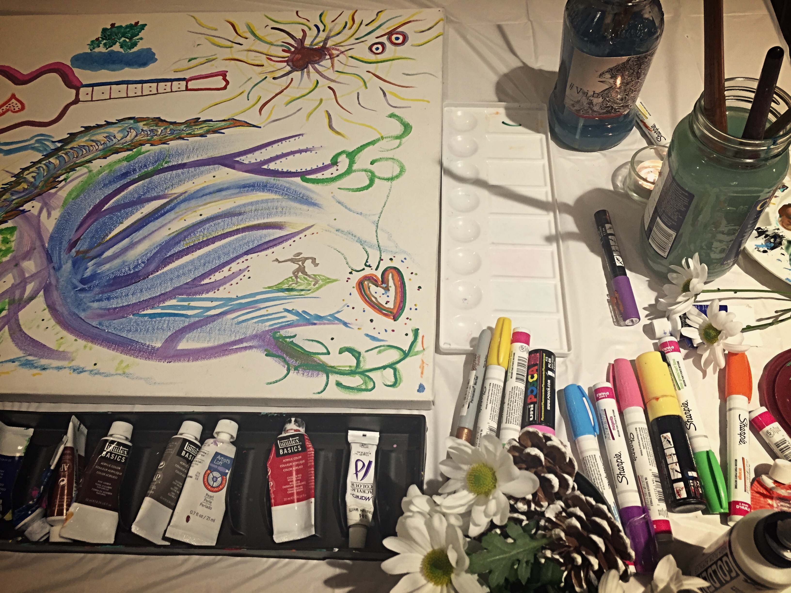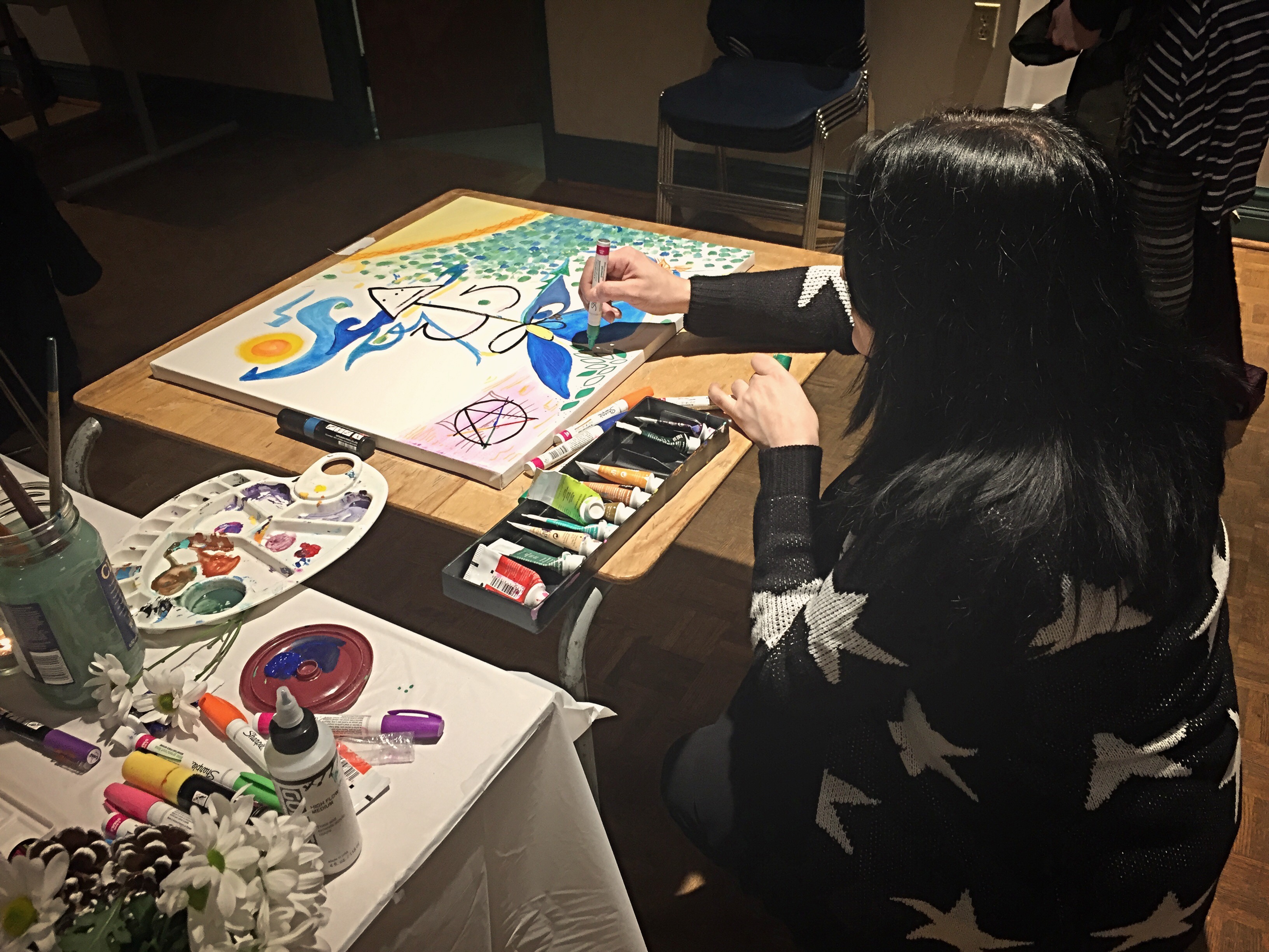Vibe Peace, a collective The Dale is newly acquainted with, led an art jam throughout the evening. They brought all the art supplies and set up two tables where everyone could contribute to three separate pieces. I have to say, collaborative art is one of my favourite things.